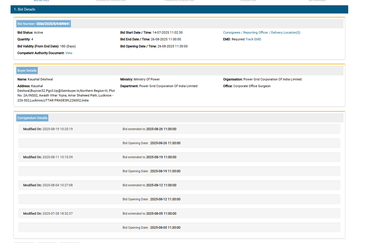 Power Grid Corporation of India Limited Central Procurement Cell Plot No. 2A INS 02 Avadh Vihar Yojna Amar Shaheed Path, Near Medanta Hospital Lucknow- 226002 UP