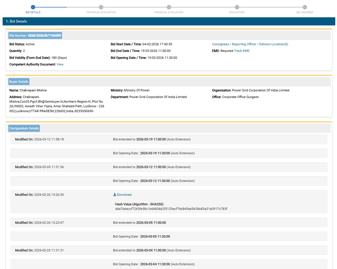 Power Grid Corporation of India Limited, Centralized Procurement Cell, 3rd Floor, Plot No. 2AINS 02, Avadh Vihar Yojna, Amar Shaheed Path, Near Medanta Hospital Lucknow- 226002 (UP).