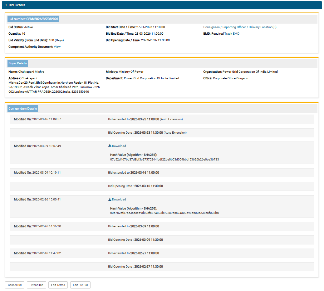 Power Grid Corporation of India Limited, Centralized Procurement Cell, 3rd Floor, Plot No. 2AINS 02, Avadh Vihar Yojna, Amar Shaheed Path, Near Medanta Hospital Lucknow- 226002 (UP).