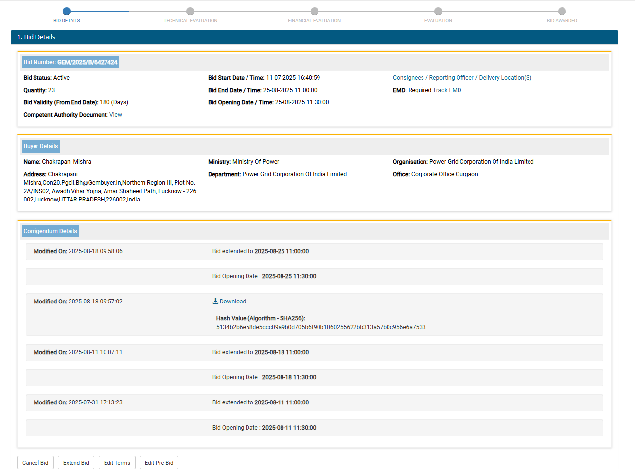 Power Grid Corporation of India Limited, Centralized Procurement Cell, 3rd Floor, Plot No. 2AINS 02, Avadh Vihar Yojna, Amar Shaheed Path, Near Medanta Hospital Lucknow- 226002 (UP).
