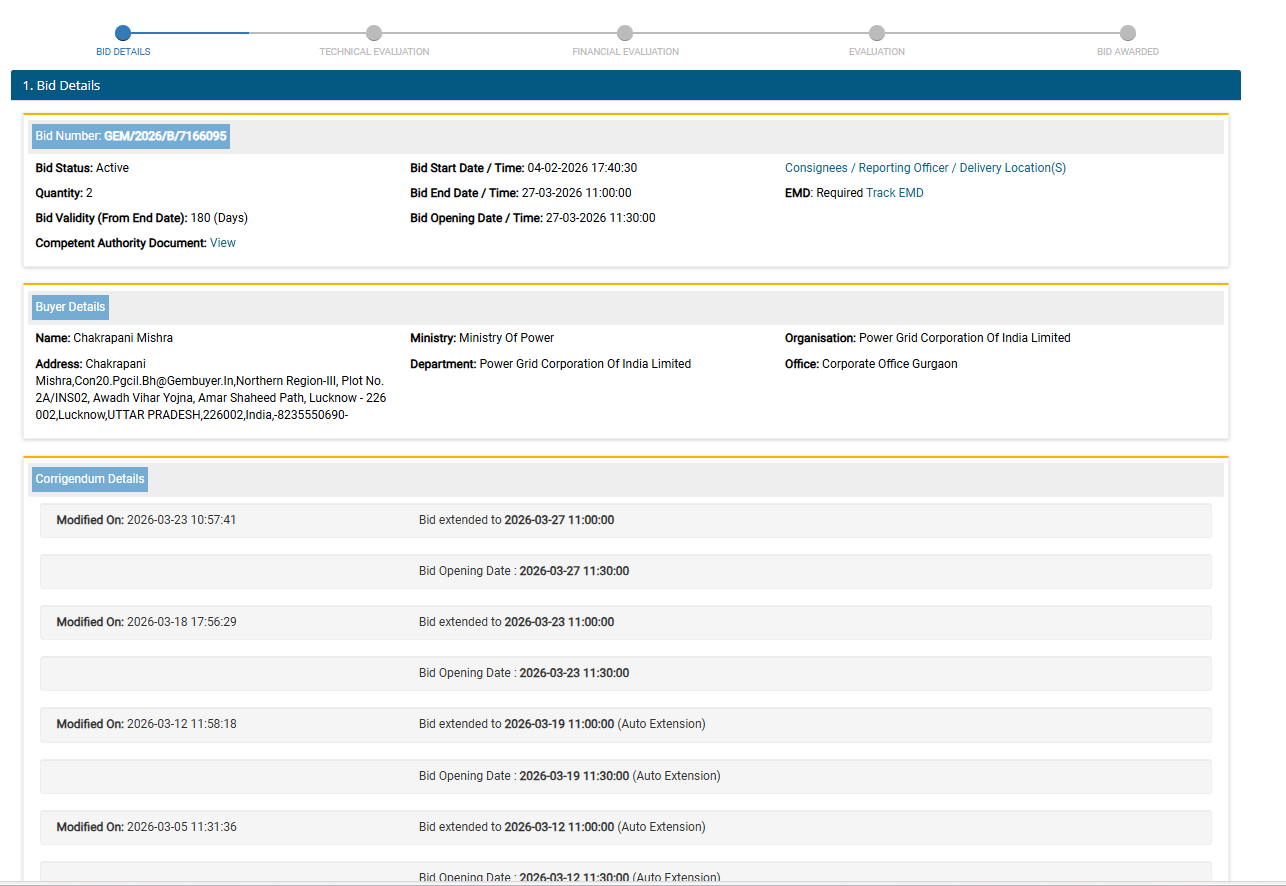 Power Grid Corporation of India Limited, Centralized Procurement Cell, 3rd Floor, Plot No. 2AINS 02, Avadh Vihar Yojna, Amar Shaheed Path, Near Medanta Hospital Lucknow- 226002 (UP).