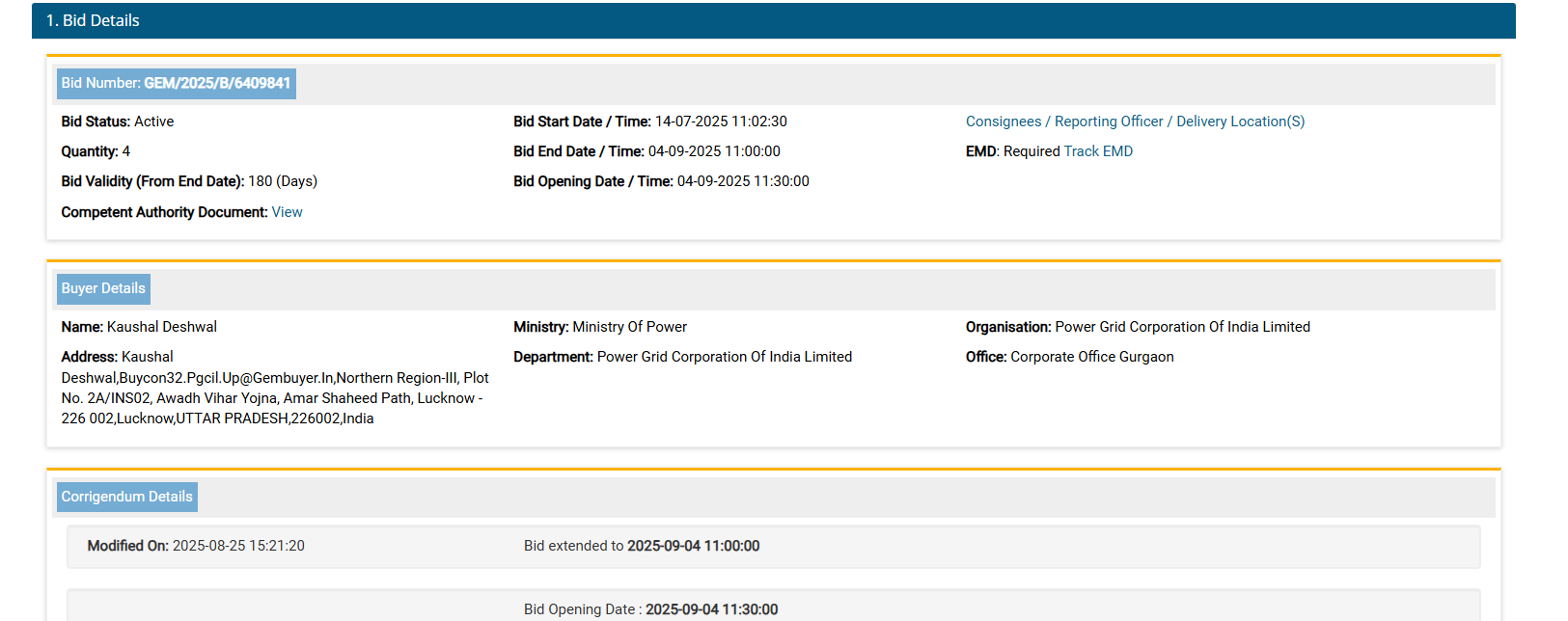 Power Grid Corporation of India Limited Central Procurement Cell Plot No. 2A INS 02 Avadh Vihar Yojna Amar Shaheed Path, Near Medanta Hospital Lucknow- 226002 UP