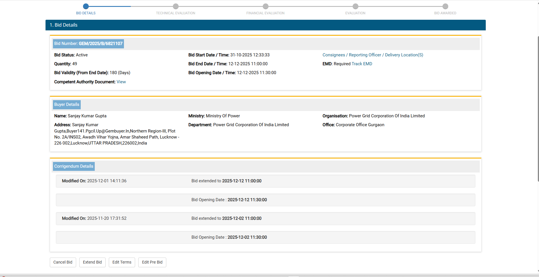 Power Grid Corporation of India Limited Central Procurement Cell Plot No. 2A INS 02, Avadh Vihar Yojna, Amar Shaheed Path, NearMedanta Hospital Lucknow 226002 UP