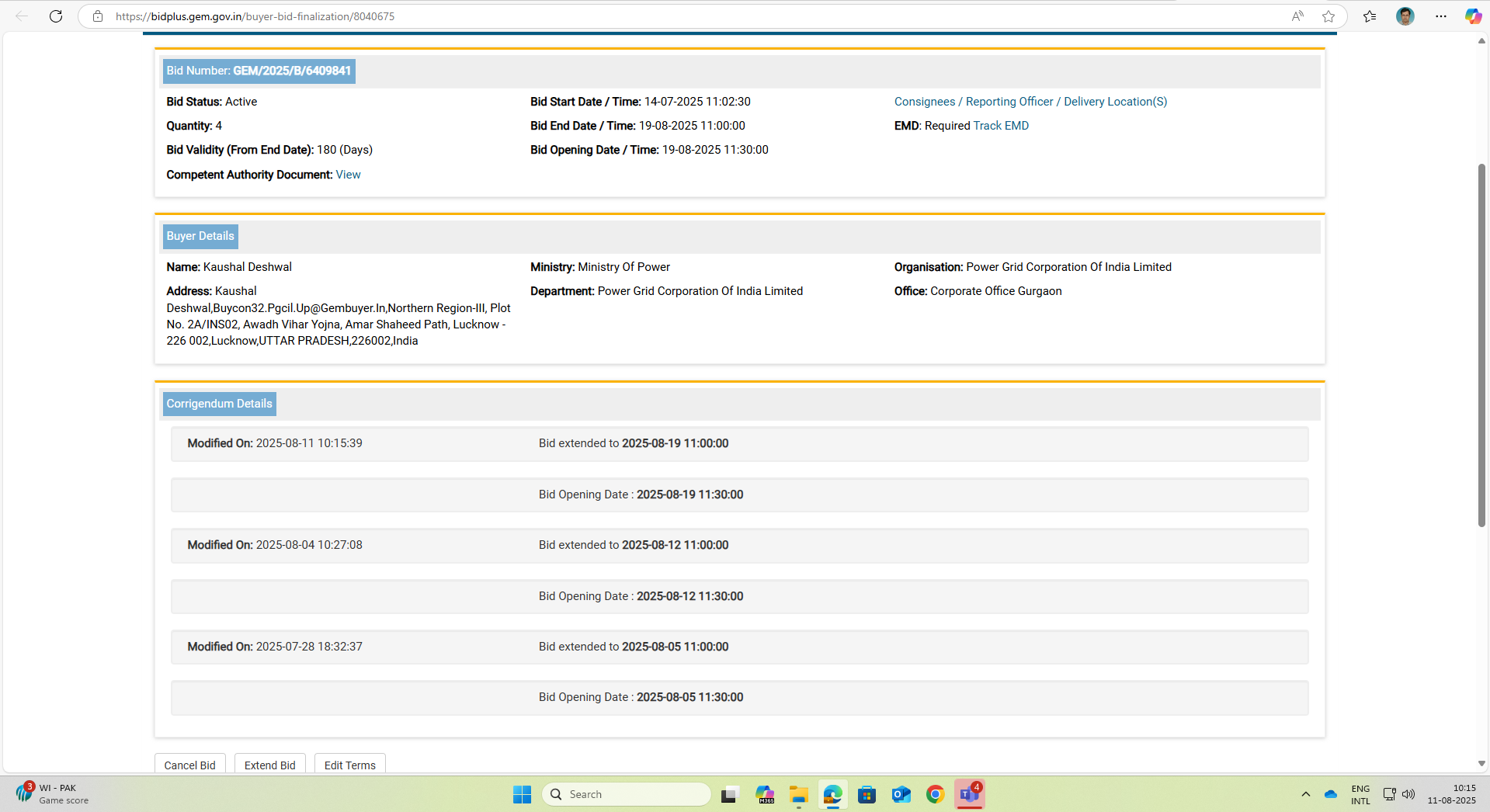 Power Grid Corporation of India Limited Central Procurement Cell Plot No. 2A INS 02 Avadh Vihar Yojna Amar Shaheed Path, Near Medanta Hospital Lucknow- 226002 UP