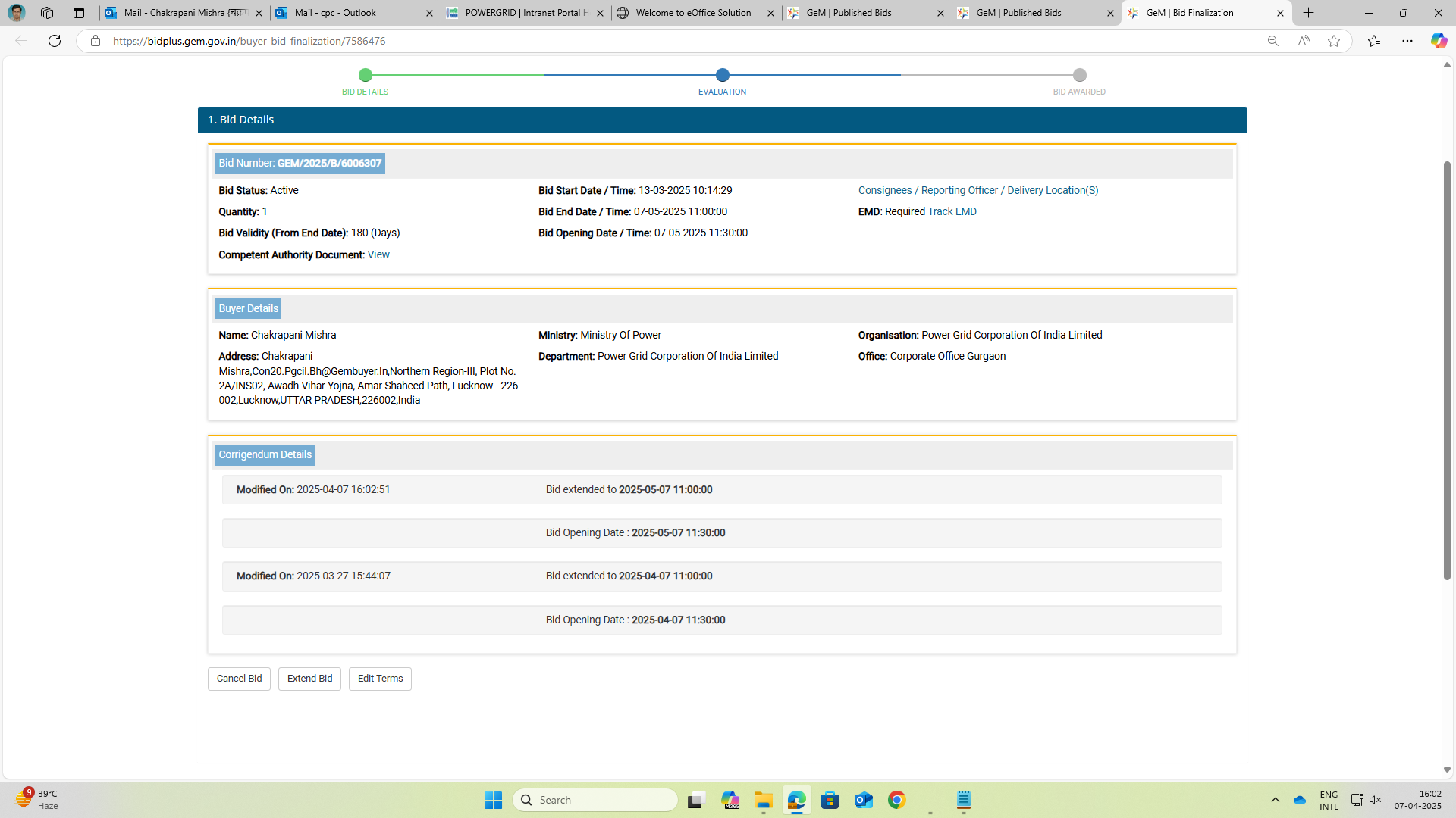 Power Grid Corporation of India Limited Centralized Procurement Cell Regional Headquarter Northern Region-III Plot No 2A INS02 Awadh Vihar Yojna Amar Shaheed Path Lucknow, Uttar Pradesh 226002