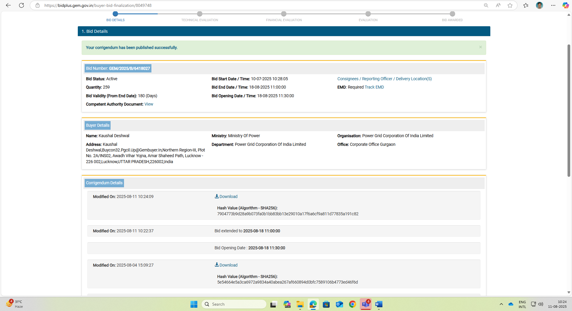 Power Grid Corporation of India Limited Central Procurement Cell Plot No. 2A INS 02 Avadh Vihar Yojna Amar Shaheed Path, Near Medanta Hospital Lucknow- 226002 UP